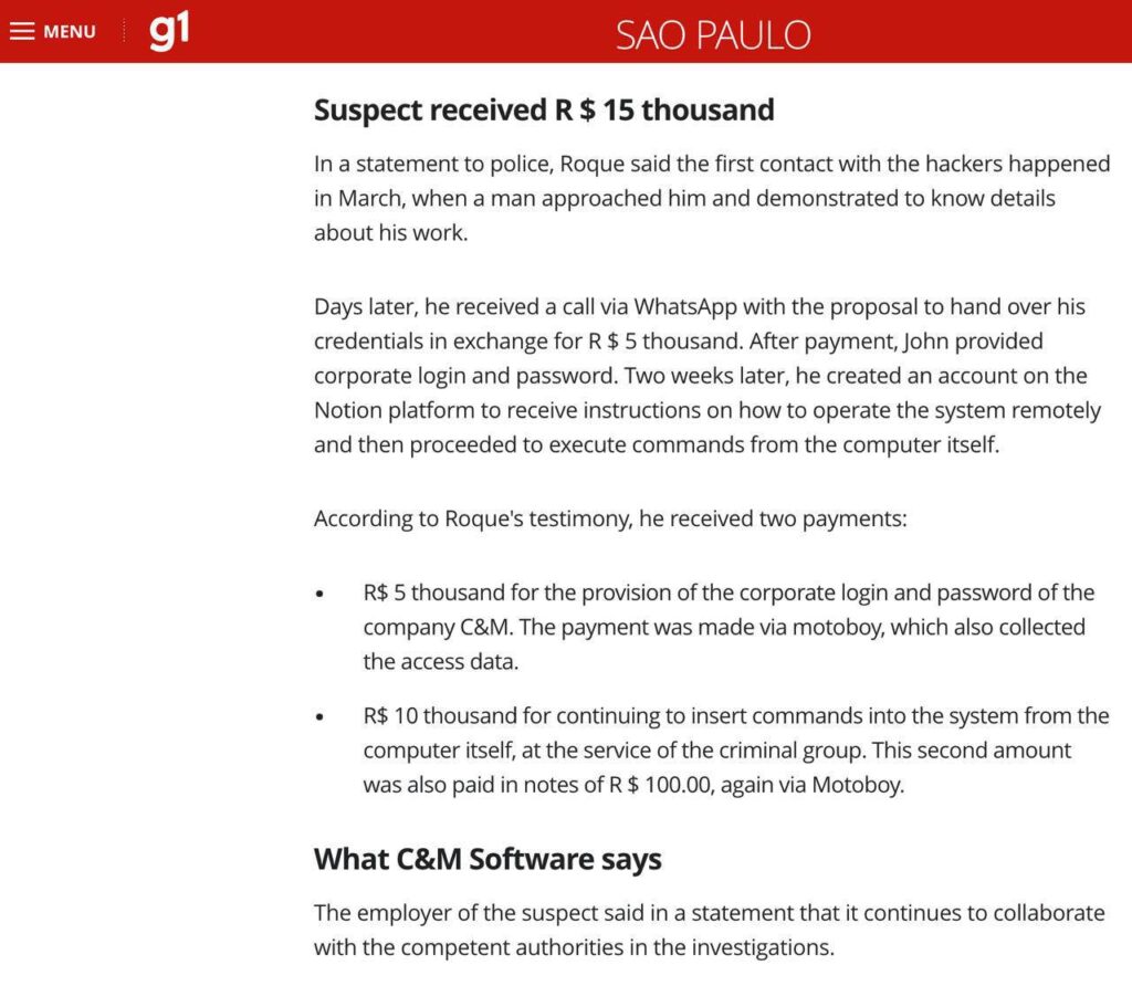 According to ZachXBT, $30–40M of the stolen funds were laundered via crypto. Notably, the breach was enabled by a C&M employee selling internal credentials for just $2,760, granting attackers full system access.