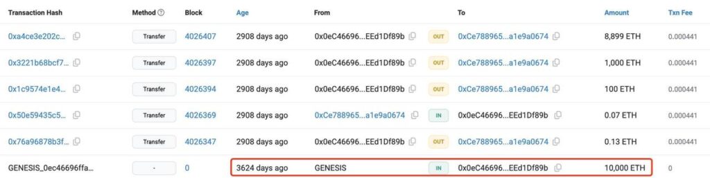 He bought 16,000 $ETH(cost $4,960) at ~$0.31 through 2 wallets during the GENESIS, and later purchased 804 $ETH(cost $369K) from exchanges at $459 in 2017.