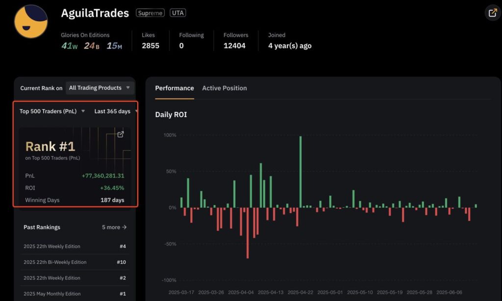 Even top traders miss sometimes. AguilaTrades, known for $77M in profits on Bybit, has started trading on Hyperliquid.