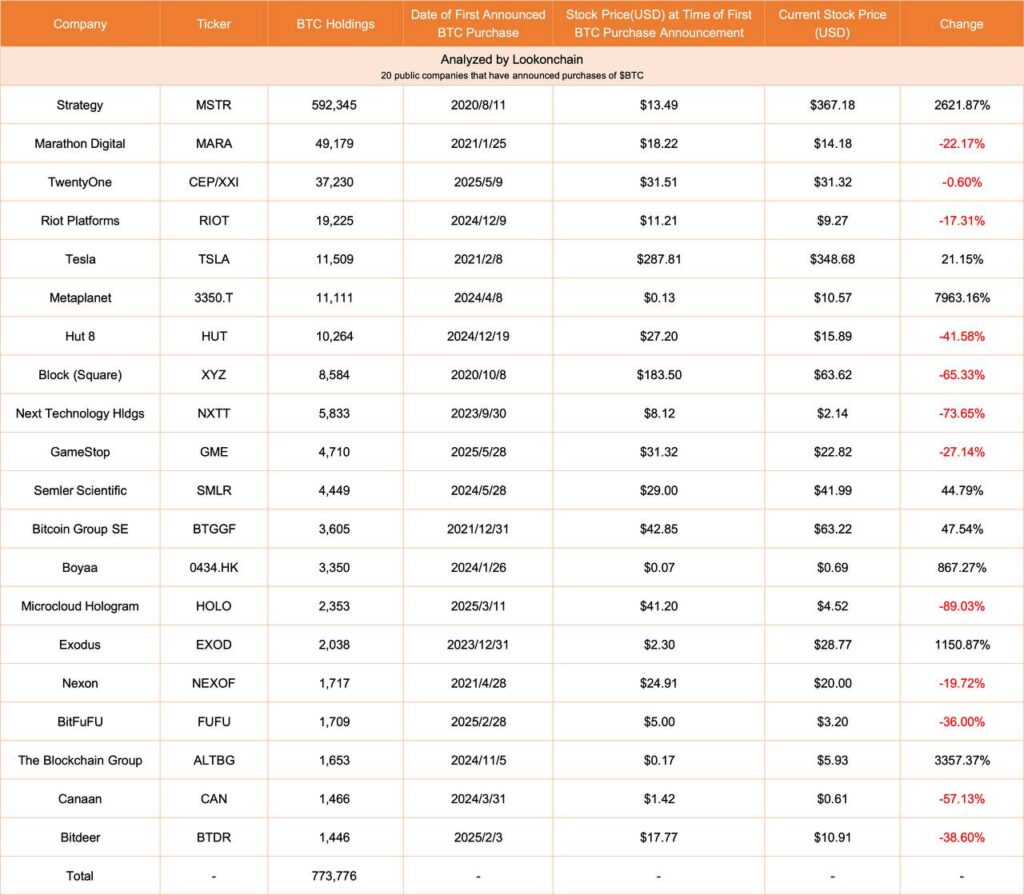 Here are 20 public companies that have announced purchases of $BTC$BTC.