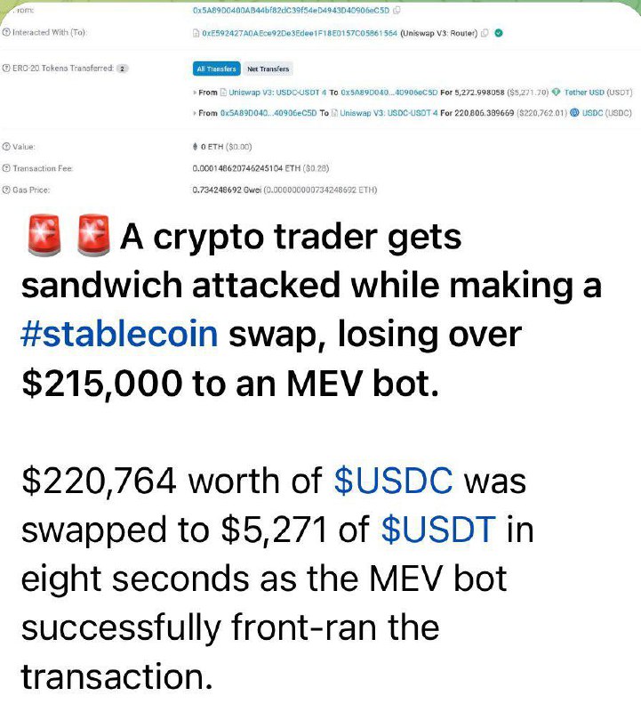 Imagine swapping $220K USDC to USDT and only got $5K back… got MEV’d