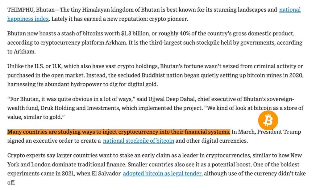 “Many countries are studying ways to inject cryptocurrency into their financial systems.” — WSJ