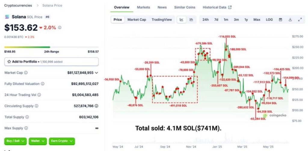 Since May 19, 2024, PumpFun has sold around 4.1M $SOL worth $741M at an average price of ~$180.