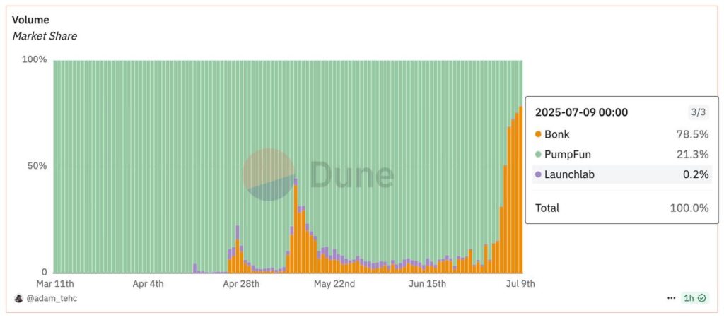 Pumpfun’s dominance went from 90% to 21% in 8 days.