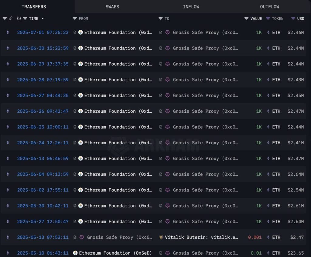The EthereumFoundation has been transferring 1,000 $ETH($2.46M) daily to multisig wallet 0xc061 recently, totaling 13,000 $ETH($32M) so far.