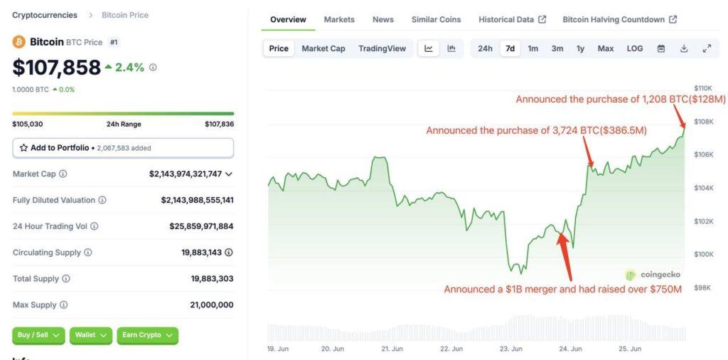 In less than a day, they spent $386.5M to buy 3,724 $BTC at an average price of $103,785, causing $BTC to spike nearly 5%.